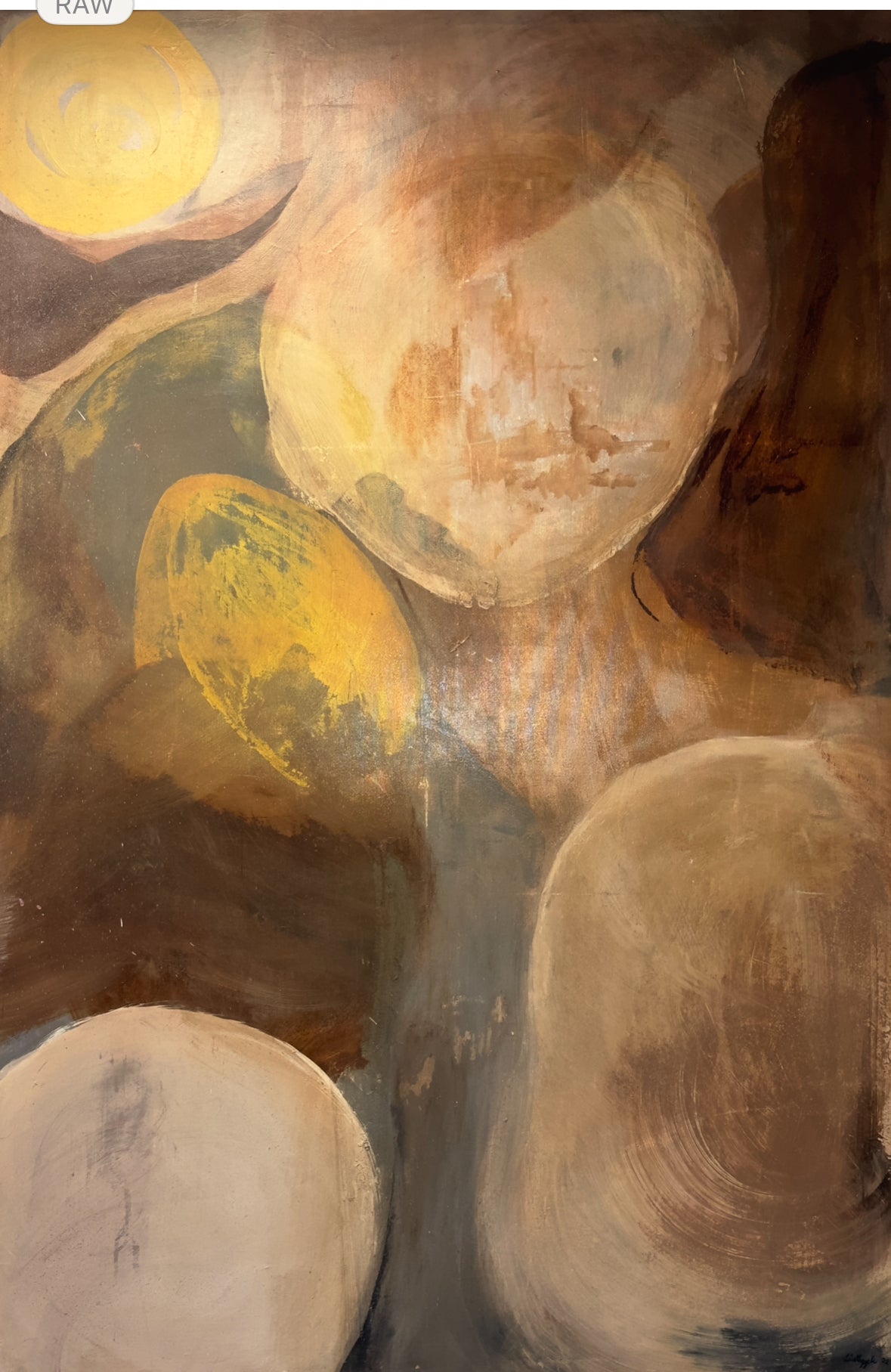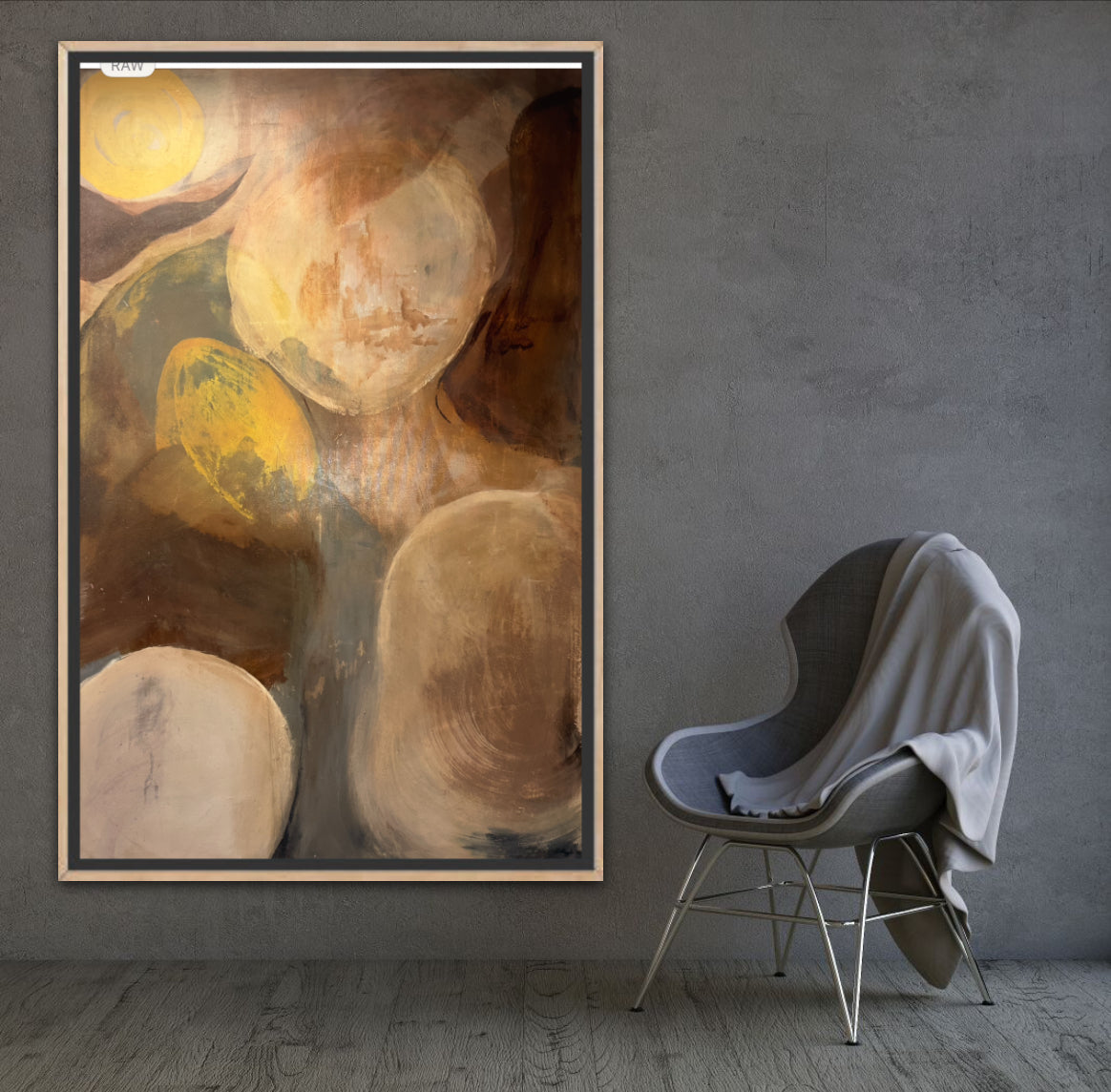 Teknikk - akryl, oljepastell, bomullslerret, blindramme bak